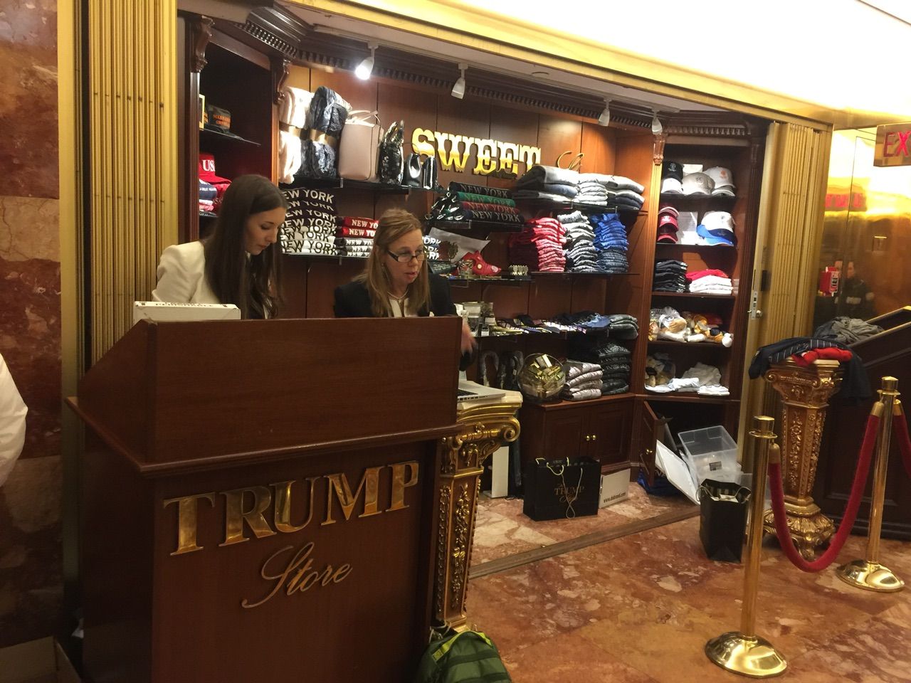 トランプグッズが並んでました。