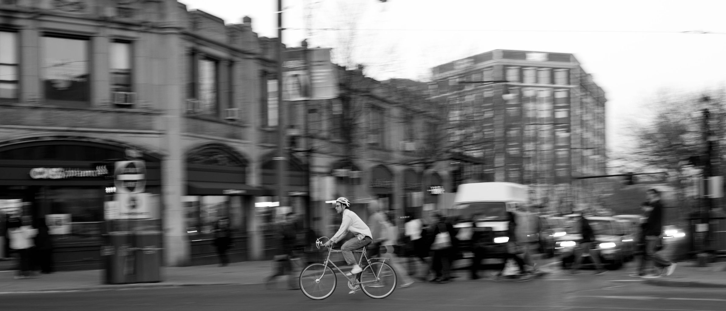 自転車が左から右へ横切るシーン。