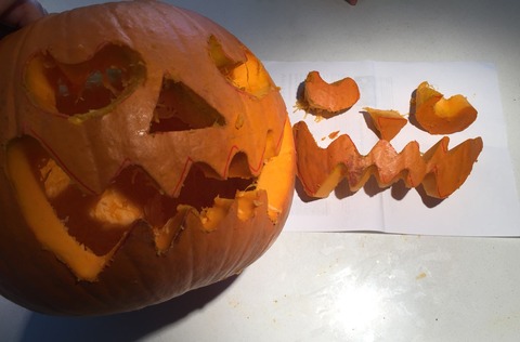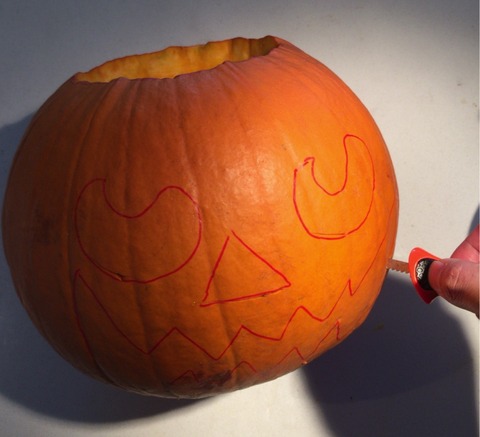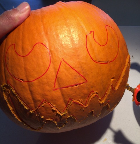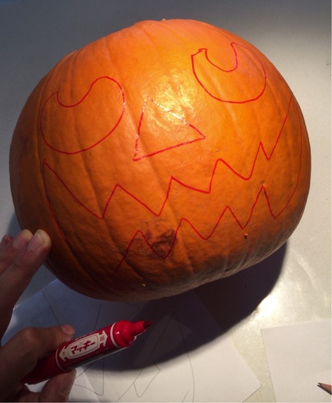 その紙をカボチャ表面に当て、