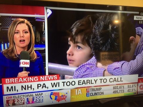 大統領選は、テレビのCNNニュースをつけて