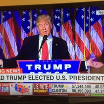 ついに、トランプ大統領が現実に。トランプが勝利宣言をしています。ヒラリーも敗北を認めました。 いかにもアメリカな演出に会場で鳴り響くUSAコール。映画じゃなく現実なんですね。グレイトとかラブとか甘い言葉が続いていますが ...